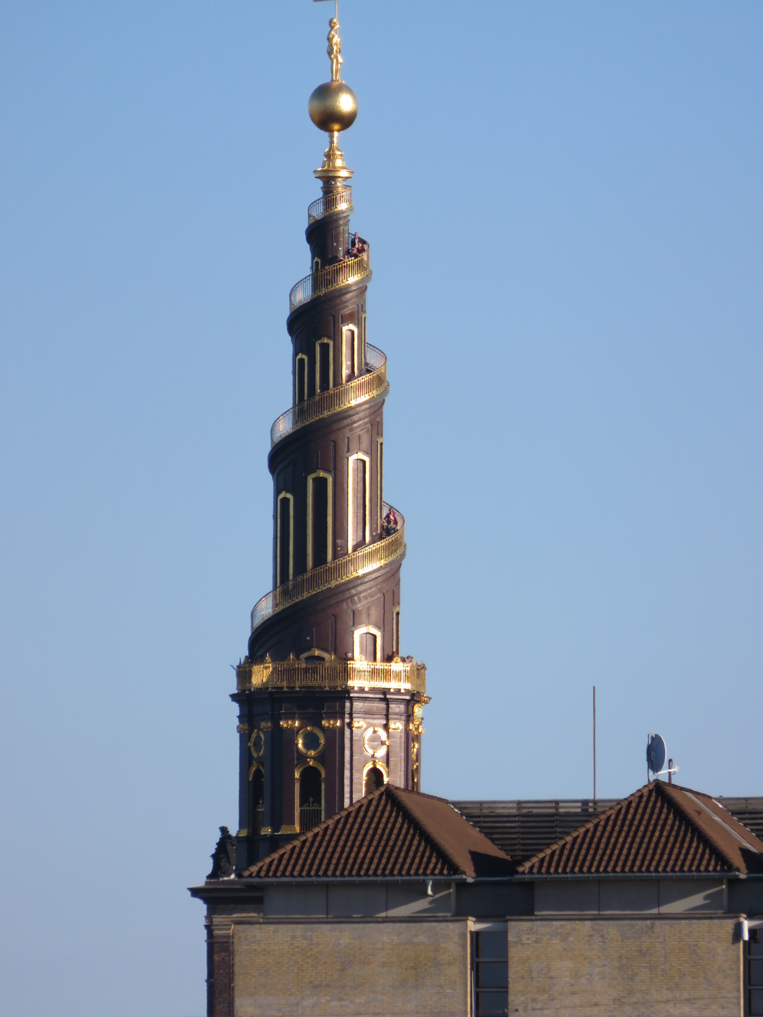 Le clocher de l'église de Notre-Sauveur (Vor Frelsers Kirke) dans le quarteir de Christianshavn
