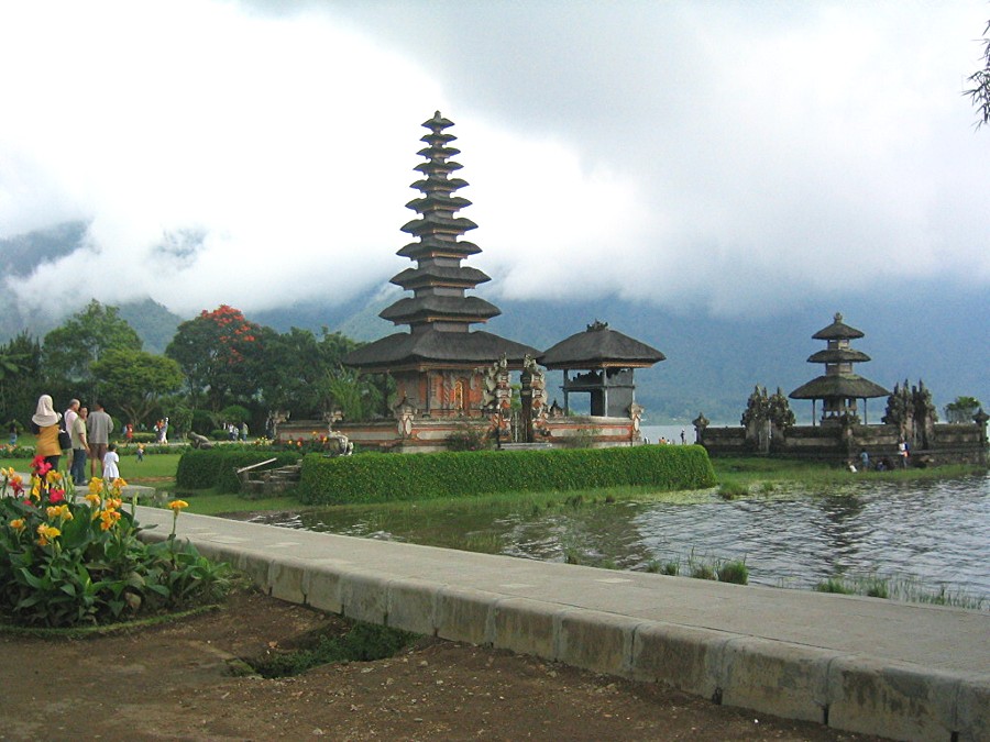 Bedugul (Bali), pavillons au bord du lac Bratan