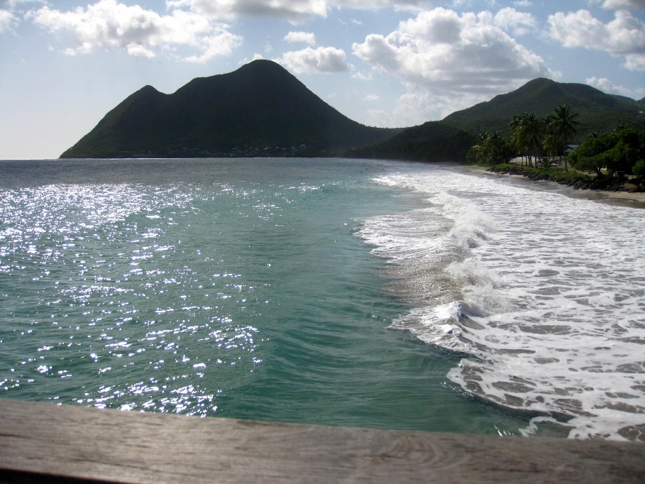 Sur la plage de Le Diamant - Au loin la montagne de ''la femme couchée''