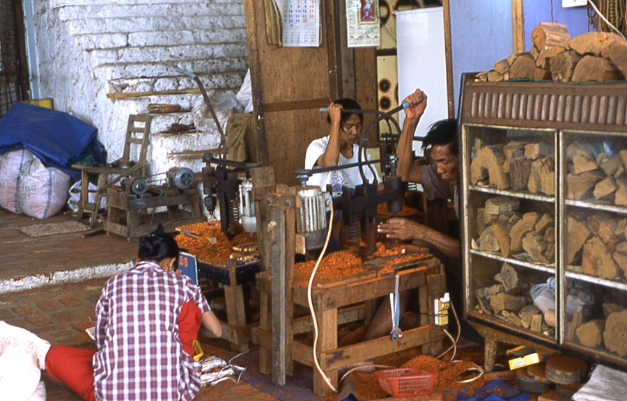 Mandalay, fabrique de chapelets bouddhistes (malas) à partir de bois de santal