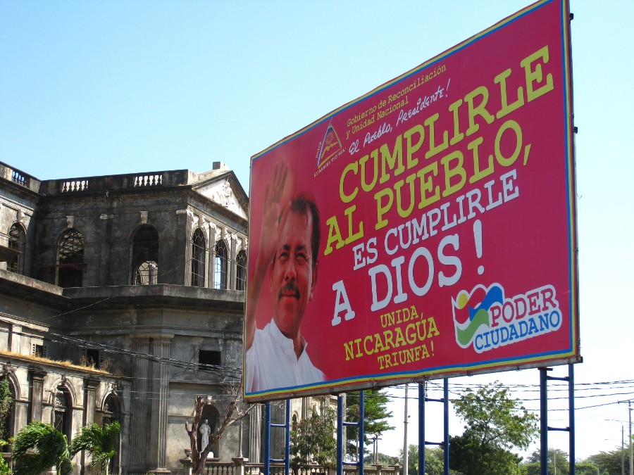 Managua : panneau publicitaire à la gloire du président Daniel Ortéga