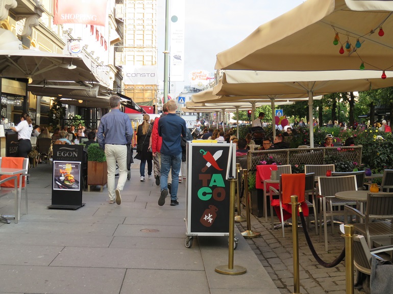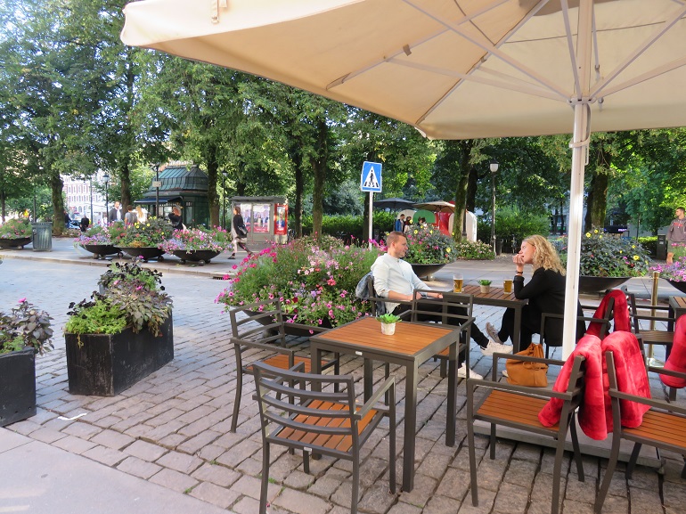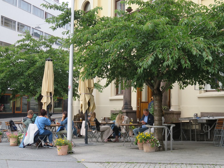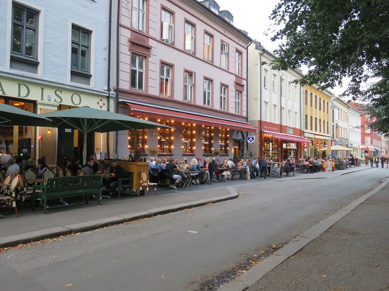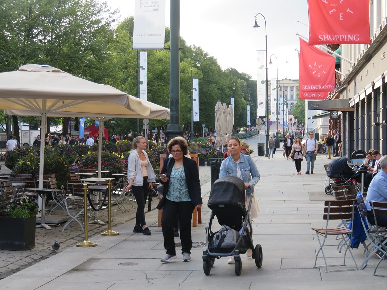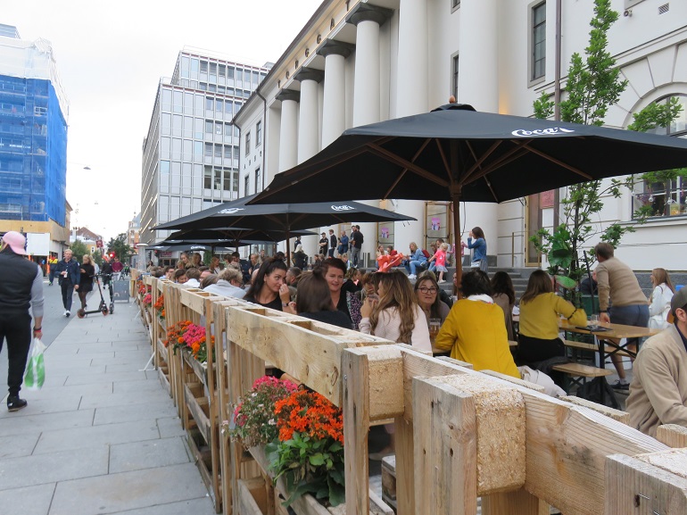 De nombreuses terrasses de café s'échelonnent tout au long de Karl Johans gate.