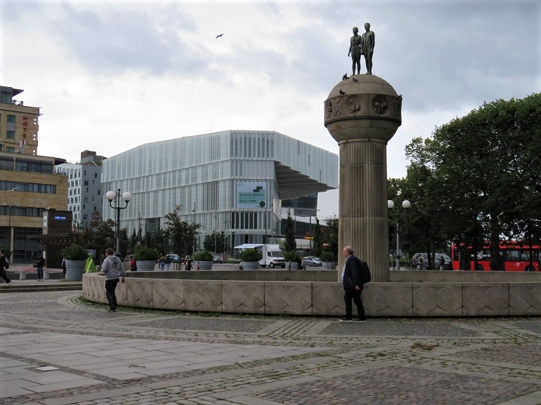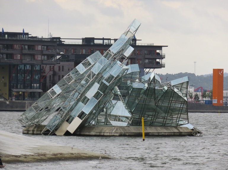 Sculpture sur l'eau à proximité de l'opéra d'Oslo