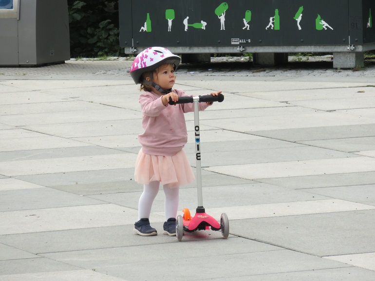 La trottinette libre service est très répandue... et il semble que l'apprentissage se fasse tôt...