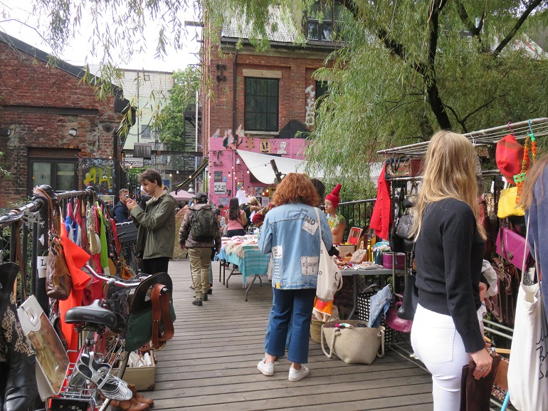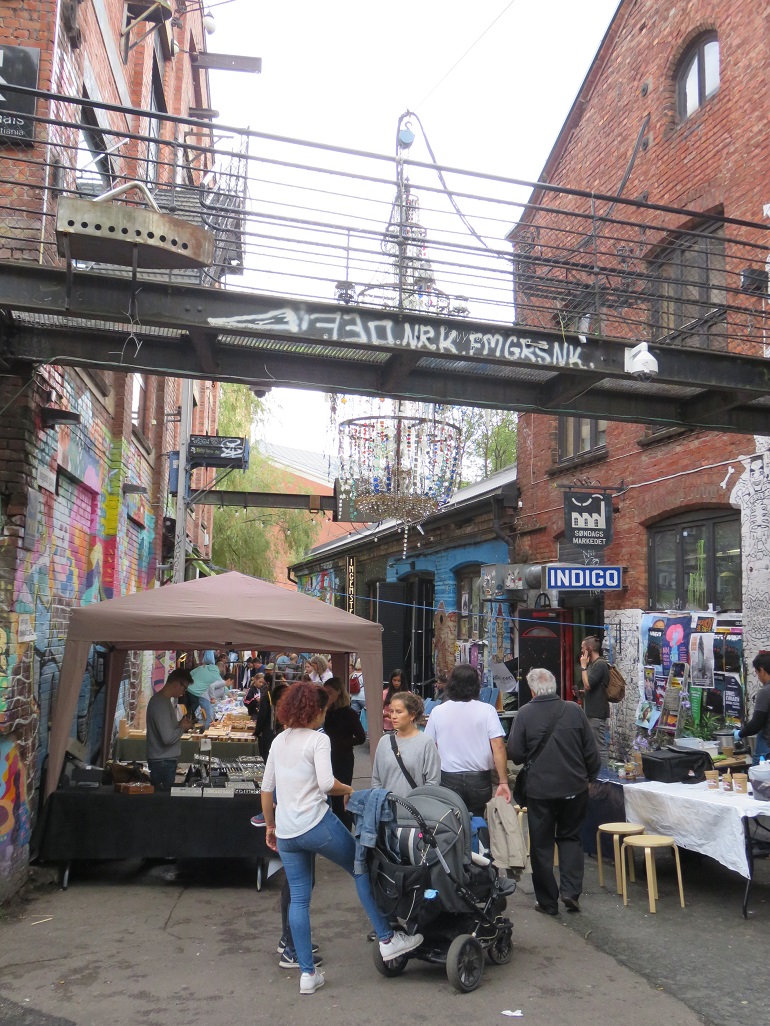 Marché artisanal du quartier de Grünerlokka, aux abord de la rivière Akerselva.