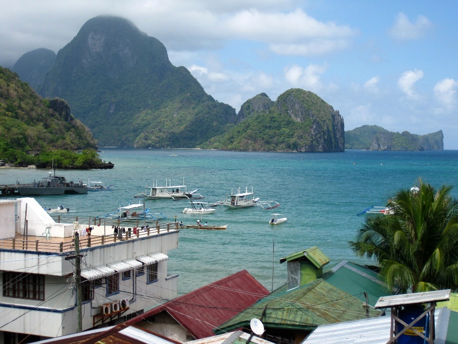 La baie de El Nido. Au large, l'ïle de Callao dans l'archipel des Bacuit