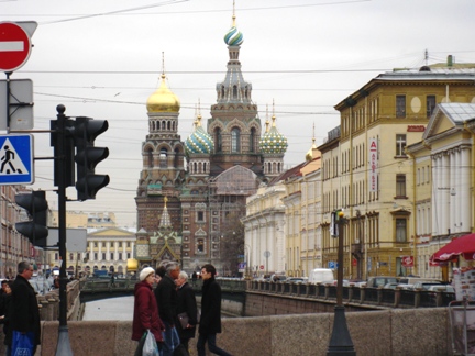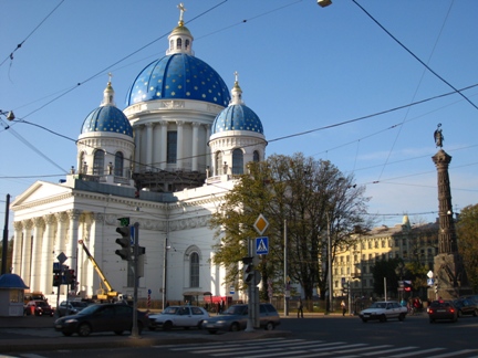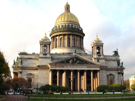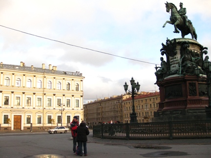 à l'arrière-plan, la cathédrale Saint-Isaac